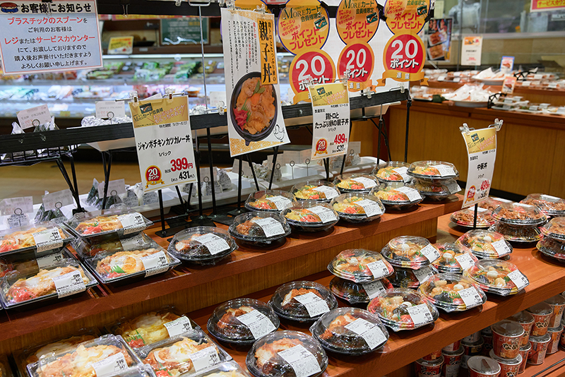 惣菜、弁当類を取り扱っています。オープンキッチン型の店舗もあり、店内調理に軸を置きお客様には「できたて」の商品をその場で提供しています。特に、店内で野菜・粉を合わせて揚げる大きなかき揚げは、有名チラシサイトでも賞を獲得するほど高く評価されています。お客様の生活リズム・ニーズに合わせ、商品化の時間帯や量目を工夫しています。