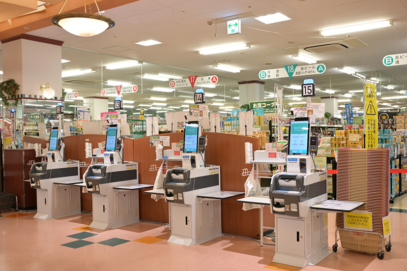 レジ業務、サービスカウンター業務を担当しています。現在ではお客様ご自身に商品のスキャン作業をしていただく「フルセルフレジ」を導入しており、利便性の向上を図りつつも、チェッカー作業以外でお客様にアテンド出来る体制を構築しました。また、お買い物を終えたお客様をお送りする場所として、常に笑顔での対応を心がけています。